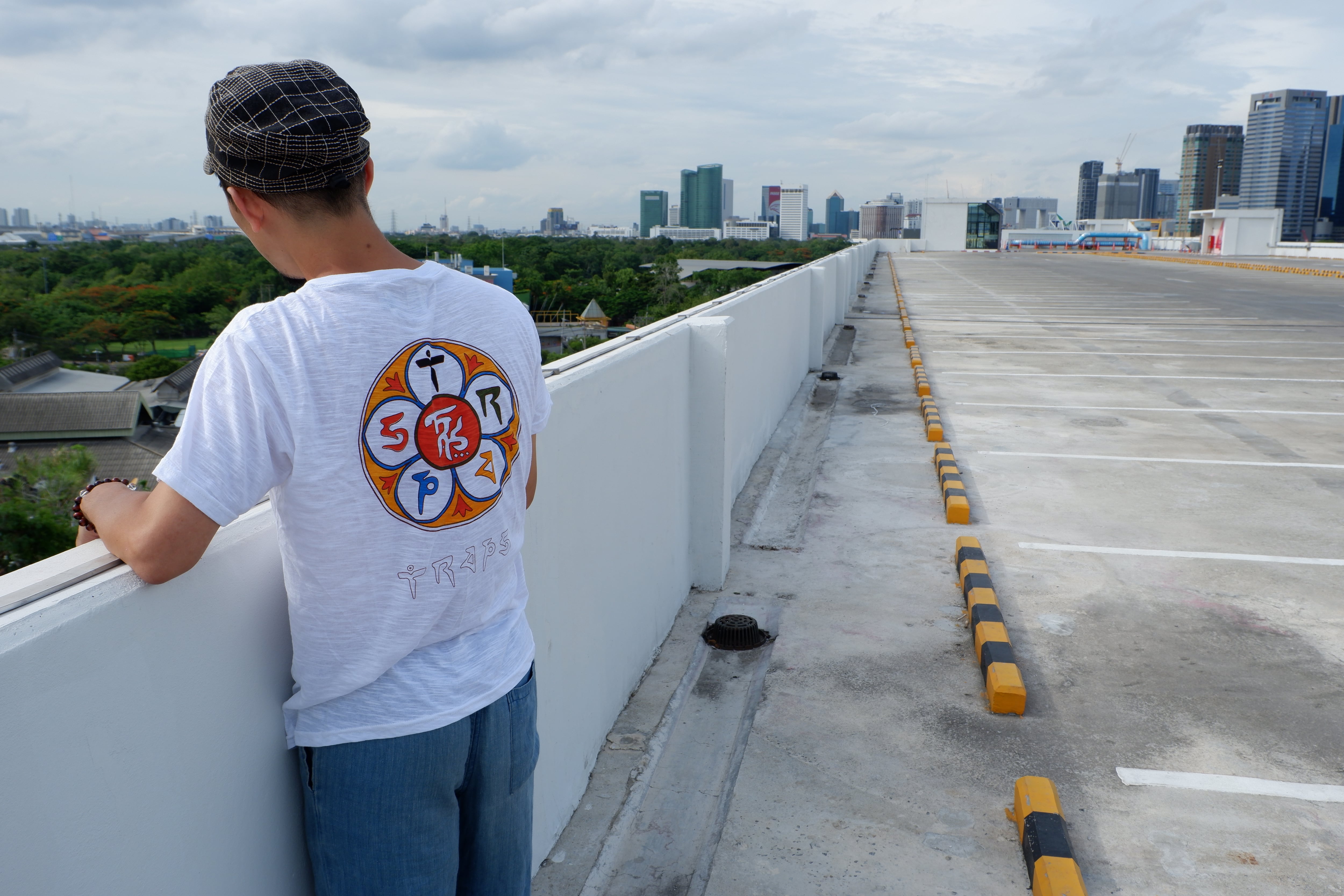 ポップな色に仏教を感じる一点!ボディーは薄手のスラブ生地を使い、
